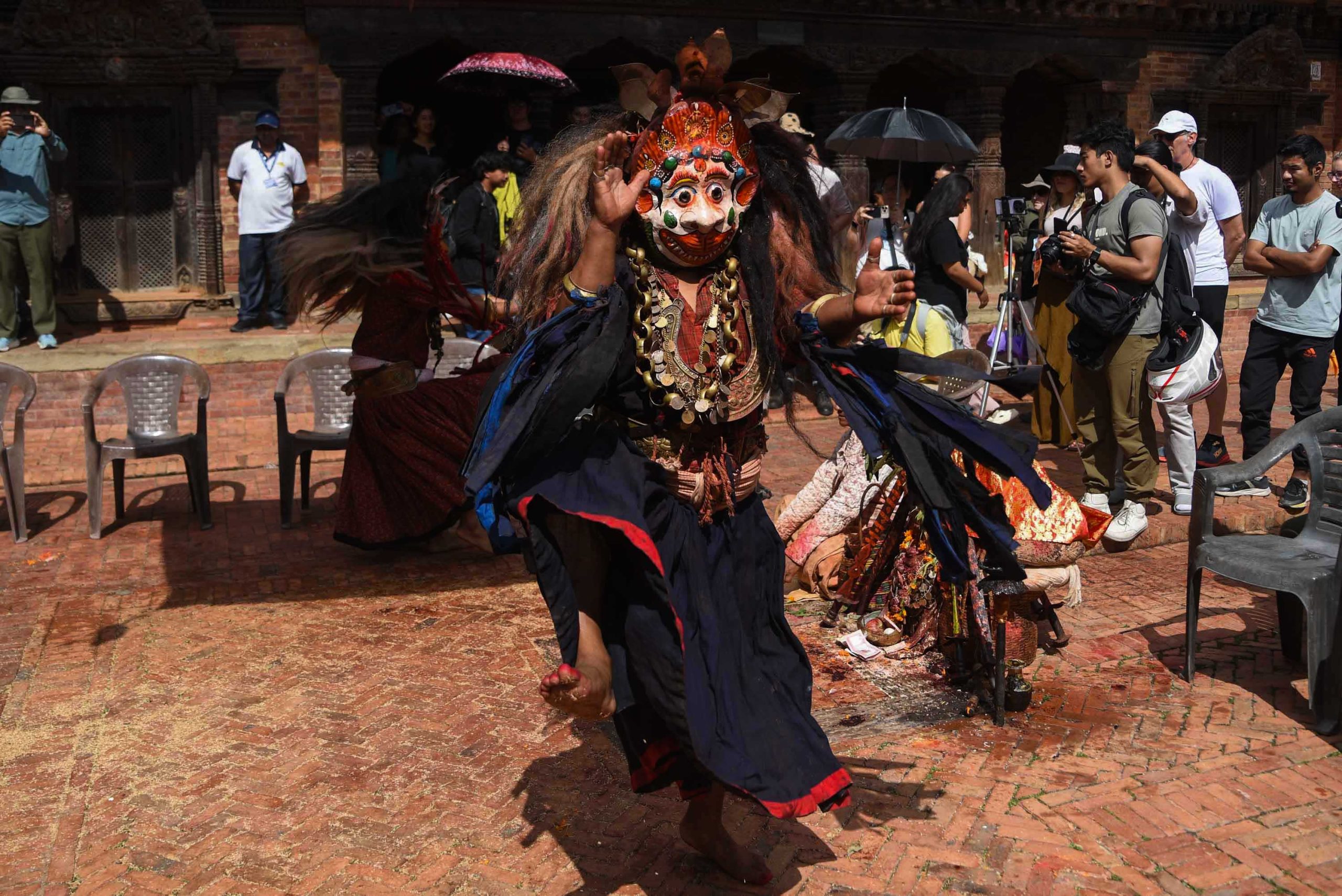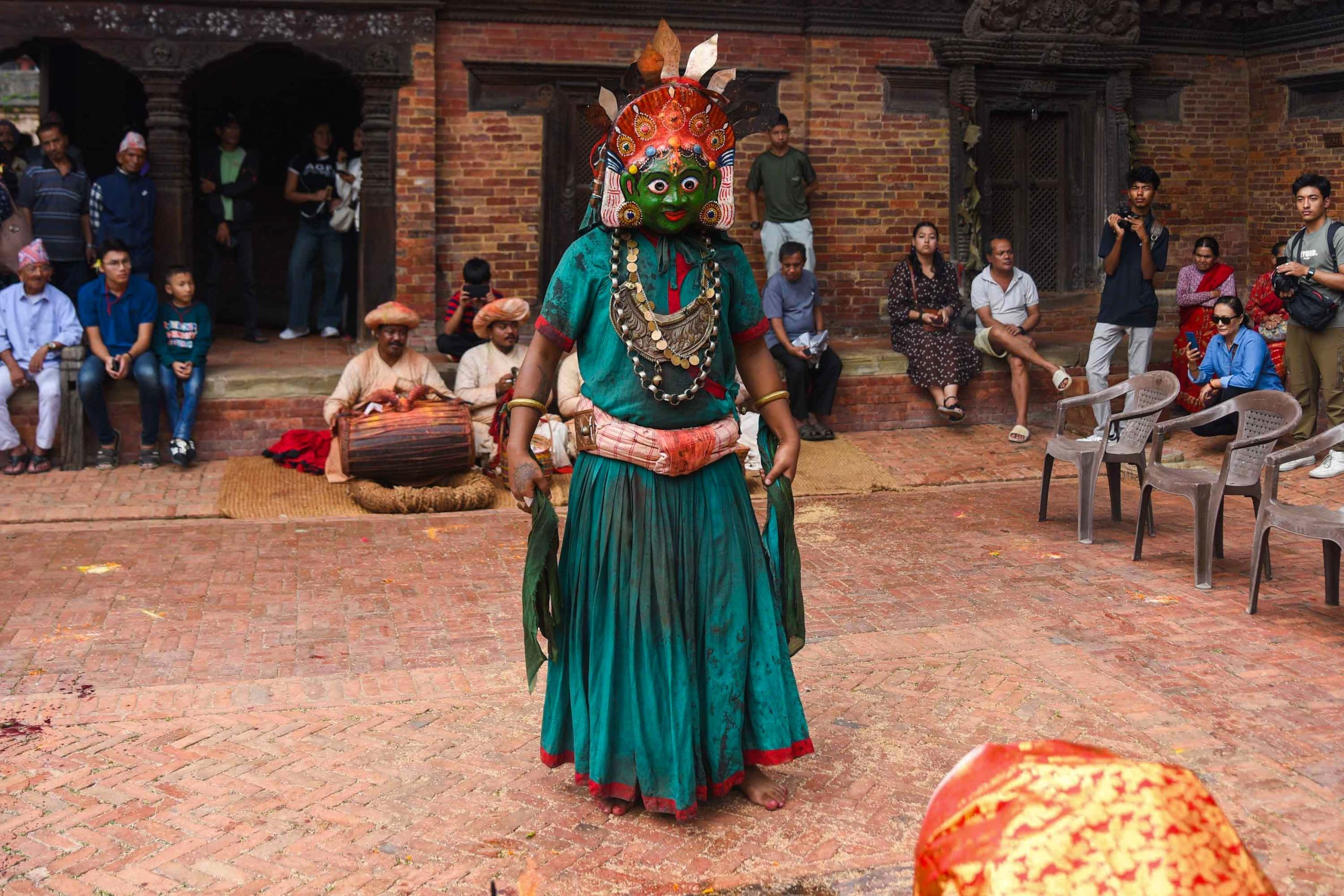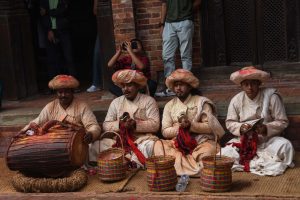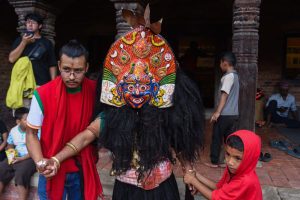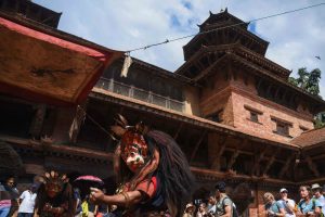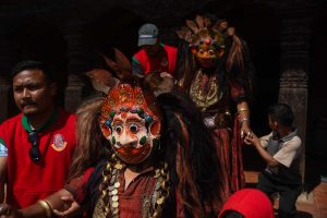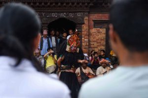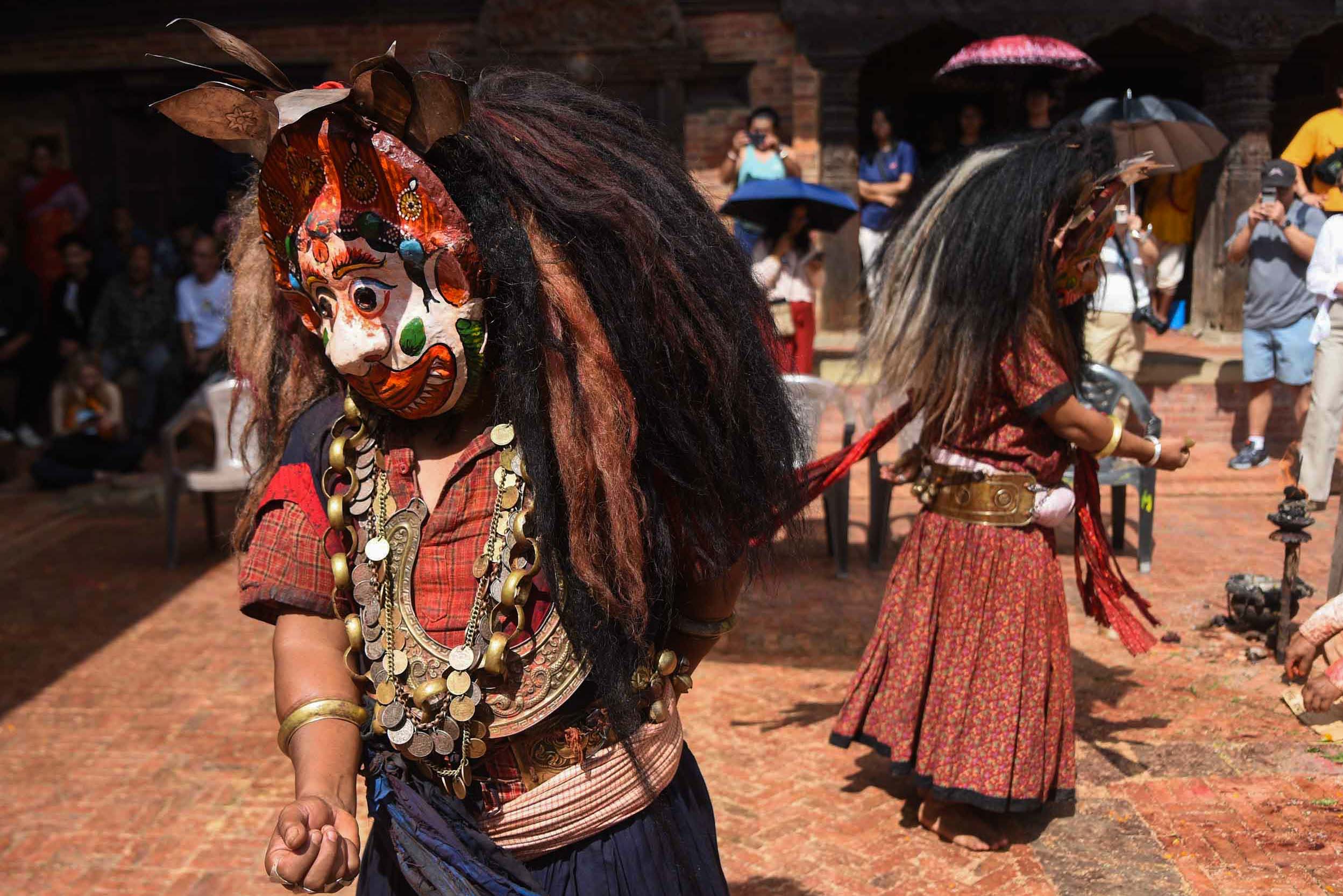 This dance is also performed on Vijaya Dashami (Tika Day) during the Dashain festival. On this occasion, the Navadurga troupe follows the tradition of visiting Manmaneshwori Devi, who is also worshipped as Taleju.